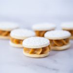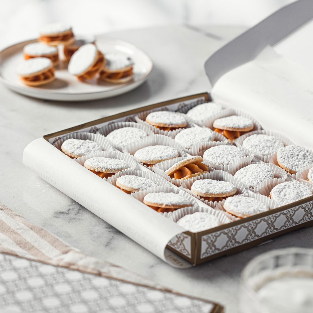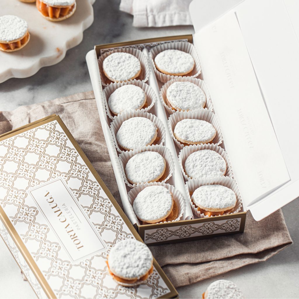 Suaves alfajores de maicena que se deshacen en la boca, rellenos con manjar artesanal. Perfectos para disfrutar en cualquier ocasión.